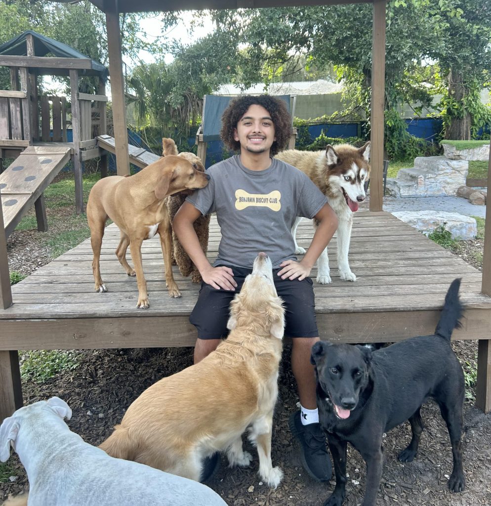 Angel has been around Benjamin Biscuit Club since he was a little boy, because his mom is Krystel! We are lucky he has been officially working with us since 2024 since he was a junior at Alonso High School. Angel has a wonderfully kind and calm energy, that dogs and humans love!